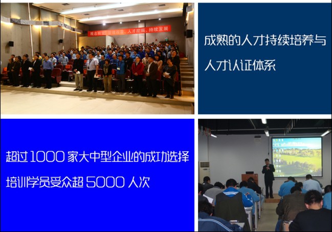 始于2005年,众多世界500强企业的选择!培训企业超1000家,培训学员受众超5000人次;独家开发了精益生产、六西格玛、质量管理、精益运营、供应链管理、通用管理等六大系列100多门精品版权课程;拥有成熟的人才持续培养和人才认证体系;每月1-3次公开课,提供可定制化的培训服务;