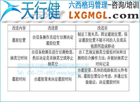 1、在项目完成后的第一个月中:电脑板点胶的发生率从3%以上降到1.5%以下;