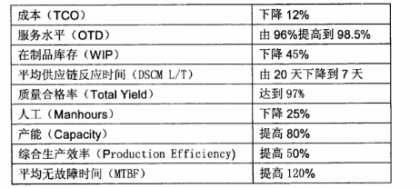 公司实施精益六西格玛的管理体系是一个非常艰苦的过程,但所取得的各方面的成绩确实令人鼓舞。下表是公司实施精益六西格玛项目改善后的主要业绩指标。