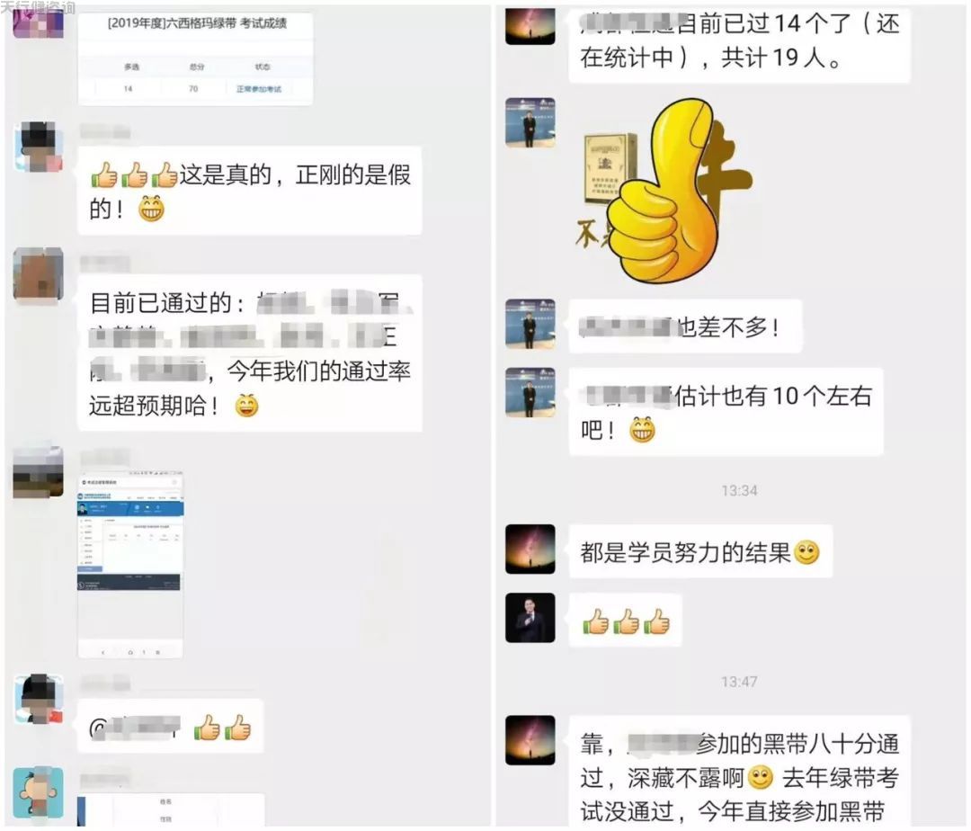 在2019年度的六西格玛考试中,天行健的学员们再创佳绩,平均通过率达到76%,某企业的报考通过率甚至达到83%,很多学员黑带、绿带、质量工程师考试全部通过。